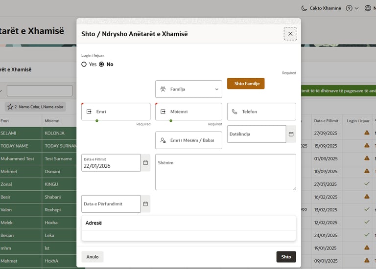 Moduli për Menaxhimin e Anëtarësisë dhe Pagesave lejon regjistrimin, ndjekjen dhe menaxhimin e anëtarëve, si dhe pagesat e tyre në mënyrë efikase.